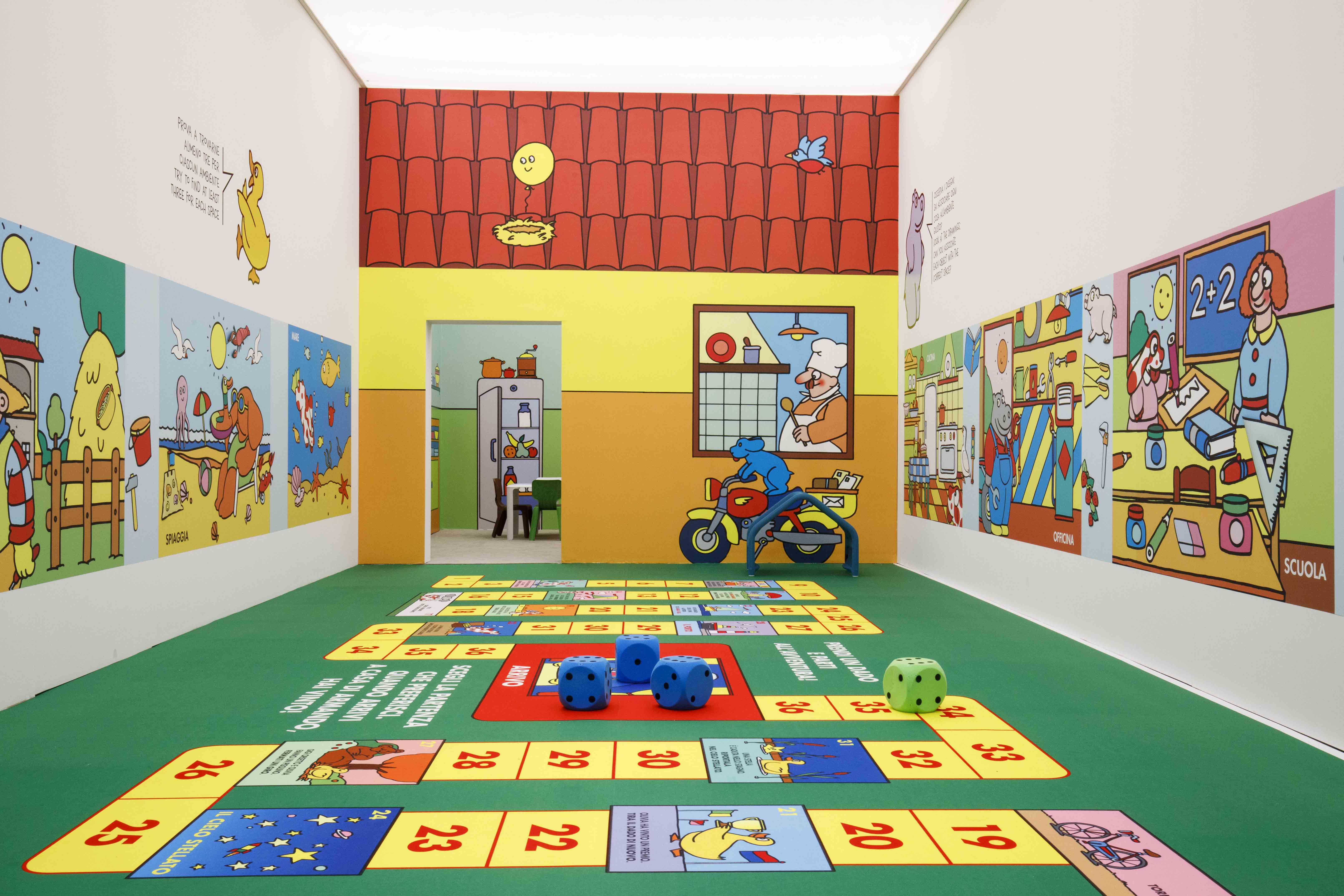 Ogni weekend, le educatrici museali accompagnano bambini e adulti a partecipare a I giochi di Pimpa presenti in mostra: la tombola, il memory, il gioco dell’oca e i libri illustrati della Pimpa e l’Armando.
