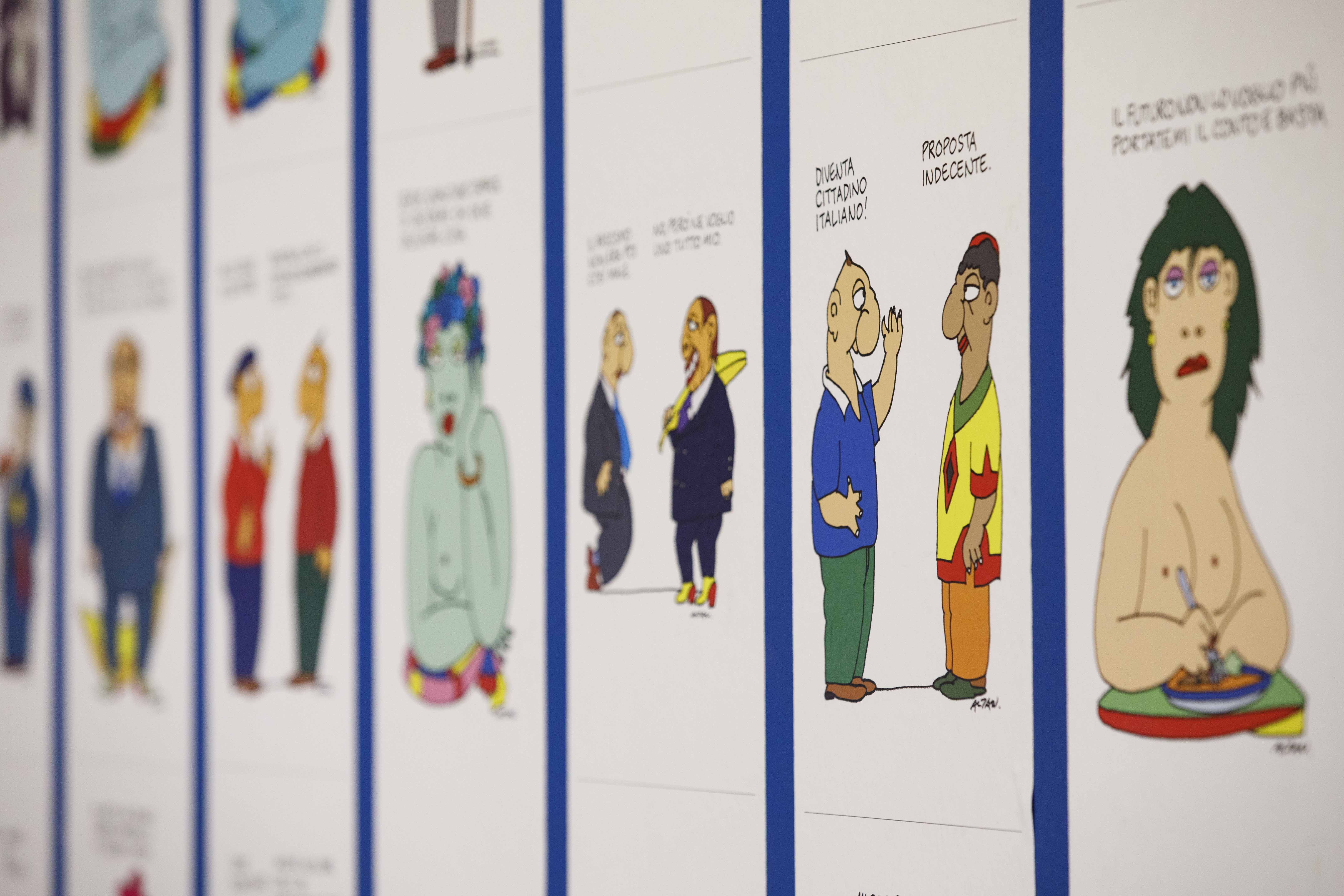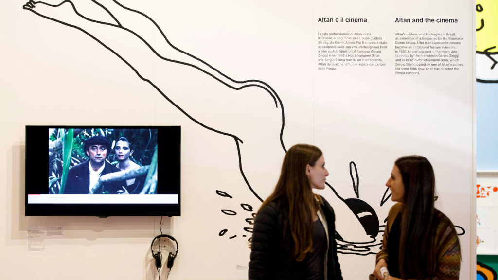 Altan è protagonista di una grande mostra al MAXXI, realizzata in coproduzione con Fondazione Solares e Franco Cosimo Panini Editore, a cura di Anne Palopoli e Luca Raffaelli. Una ricognizione completa per raccontare, in un percorso articolato, tutto il suo lavoro tra disegni originali, poster, illustrazioni, quadri, schizzi, tavole, libri e filmati.