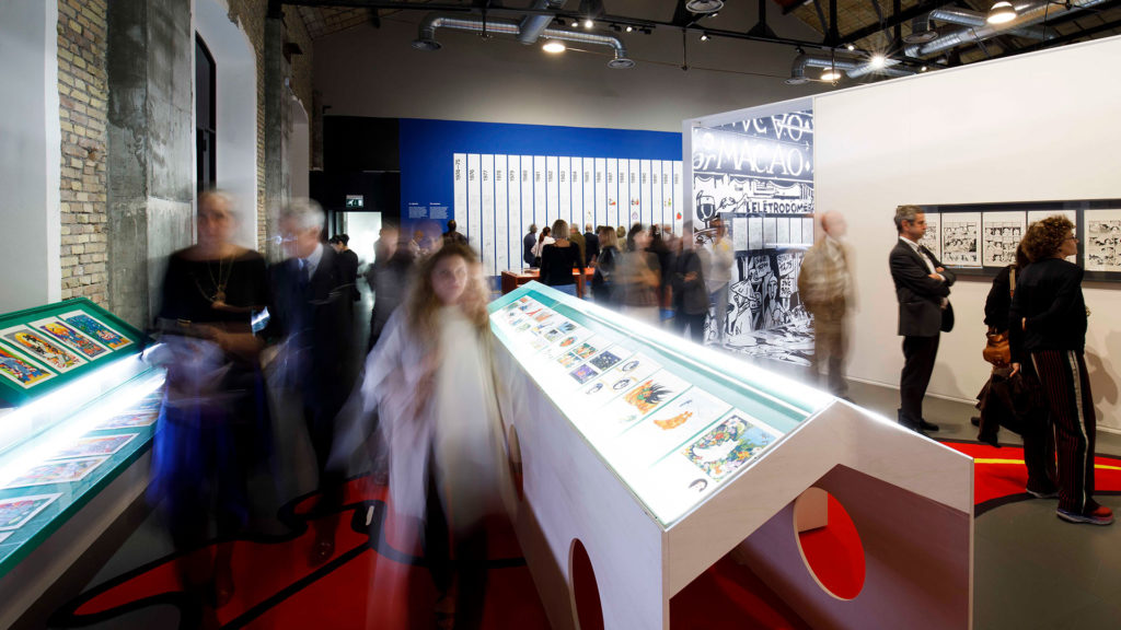 Ecco finalmente la mostra completa di un autore capace di muoversi agilmente tra disegni dedicati all’infanzia e fumetto d’avventura, tra romanzi illustrati e filmati di animazione, tra vignette e sceneggiature.