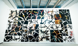 Where I Come From is a modular painting made up of canvases of different sizes presented as a collective unit and arranged holistically.Each canvas is therefore independent, but together they create connections and disconnections: through abstraction and repeated motifs, these works are a metaphor for the chance encounters and decisions that led the artist – as well as many others – to return to live in Israel.