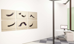 In A Spectacular Miscalculation of Global Asymmetry Danilo Correale has transformed the exhibition space into an alienating environment, something like the office of a US multinational corporation in which the paintings, seemingly abstract patterns on canvas, representing quantitative and qualitative information in an explicit antithesis to the irony of screensavers on inactive monitors.