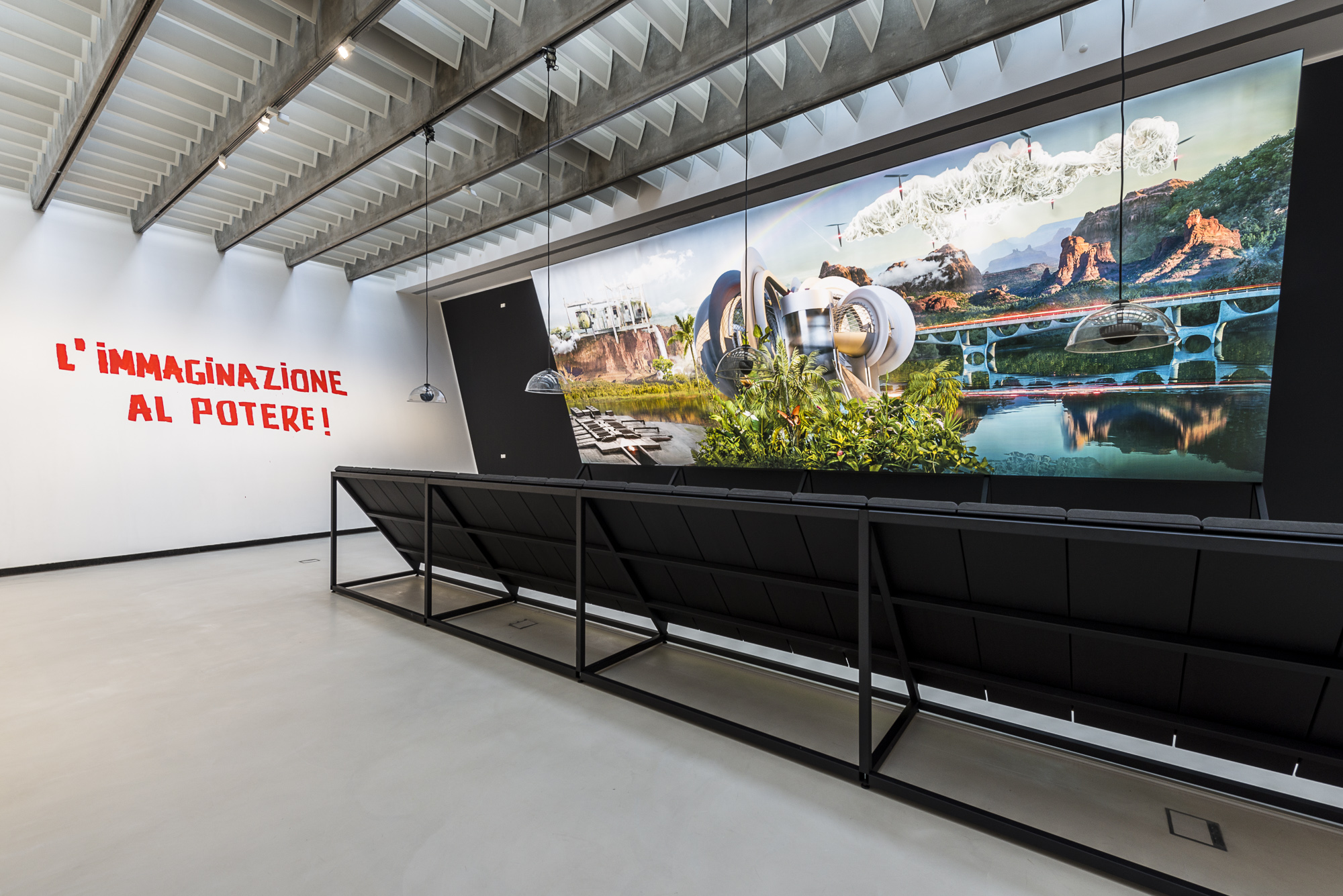Grcic explores the visionary aspect of the work of Sergio Musmeci, Giuseppe Perugini, Maurizio Sacripanti and contemporary architect Bernard Khoury. Through the use of Alcantara, Grcic gives life to a fantastic landscape between reality and surrealism, reflecting on topical themes such as the connection between the natural and the artificial and the relationship between man and technology.
