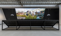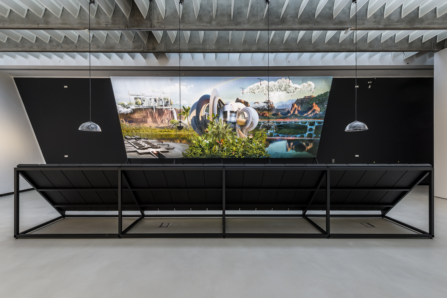 A fantastic landscape bordering on the surreal reflects on the comparison between the natural and the artificial, between man and technology.