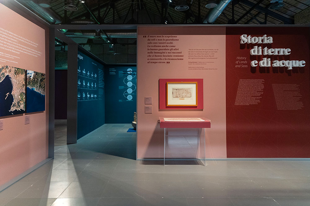 The exhibition’s itinerary represents the Mediterranean in all its complexity through immersive installations and previously unseen satellite images, in dialogue with works by Camilla Gurgone, Felice Levini and Giulio Paolini, with those by Nicolò Degiorgis and Luca Trevisani part of the MAXXI Collection and with important loans from the Museo delle Civiltà, the Museo Nazionale Etrusco di Villa Giulia, the Museo Nazionale Romano, the Società Geografica Italiana, and the Regione Siciliana – Soprintendenza del Mare