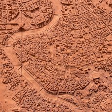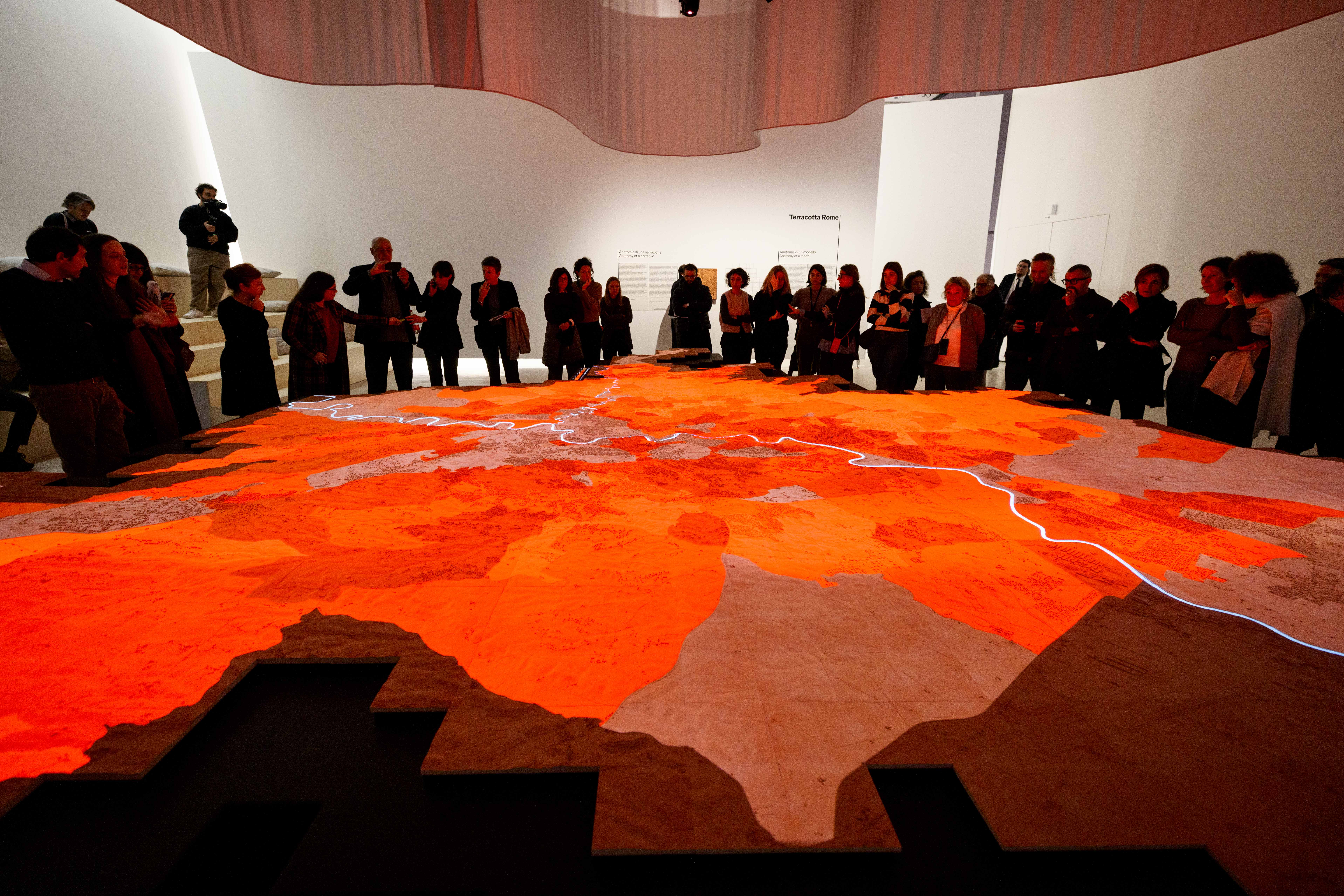 Who are the Romans of today, and where do they live? Which urban areas are greener or more built-up? Where do the elderly live, and where do families with young children settle? Is Rome a compact and uniform city, or is it dispersed and fragmented? In order to investigate these essential urban questions, the Museum commissioned and acquired in the MAXXI Architecture and Contemporary Design Collections, a physical model of the Municipality of Rome at 1:7,500 scale that acts as a canvas. Cast entirely in terracotta, this unique model showcases new data on the spatial, social, and environmental dynamics of the city. Data projections reveal hidden narratives beneath Rome’s contemporary urban structure that invite discovery and reflection. Documenting a century of urban development, the model and its narratives provides a tool to read the complex DNA of contemporary Rome. Rather than offer easy solutions, it provides a platform to comprehend the urban condition and imagine a more sustainable future.