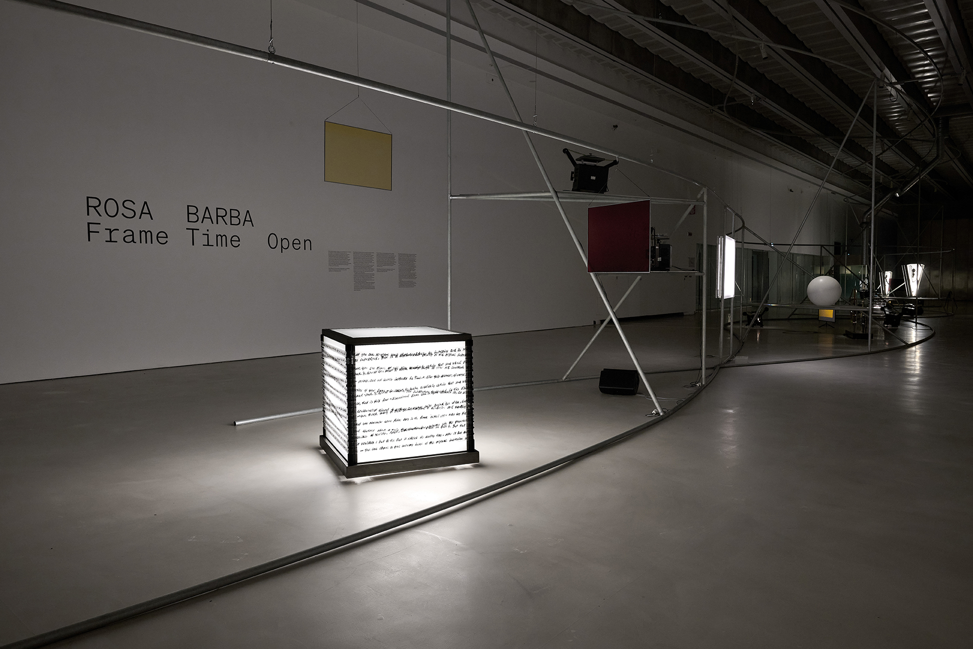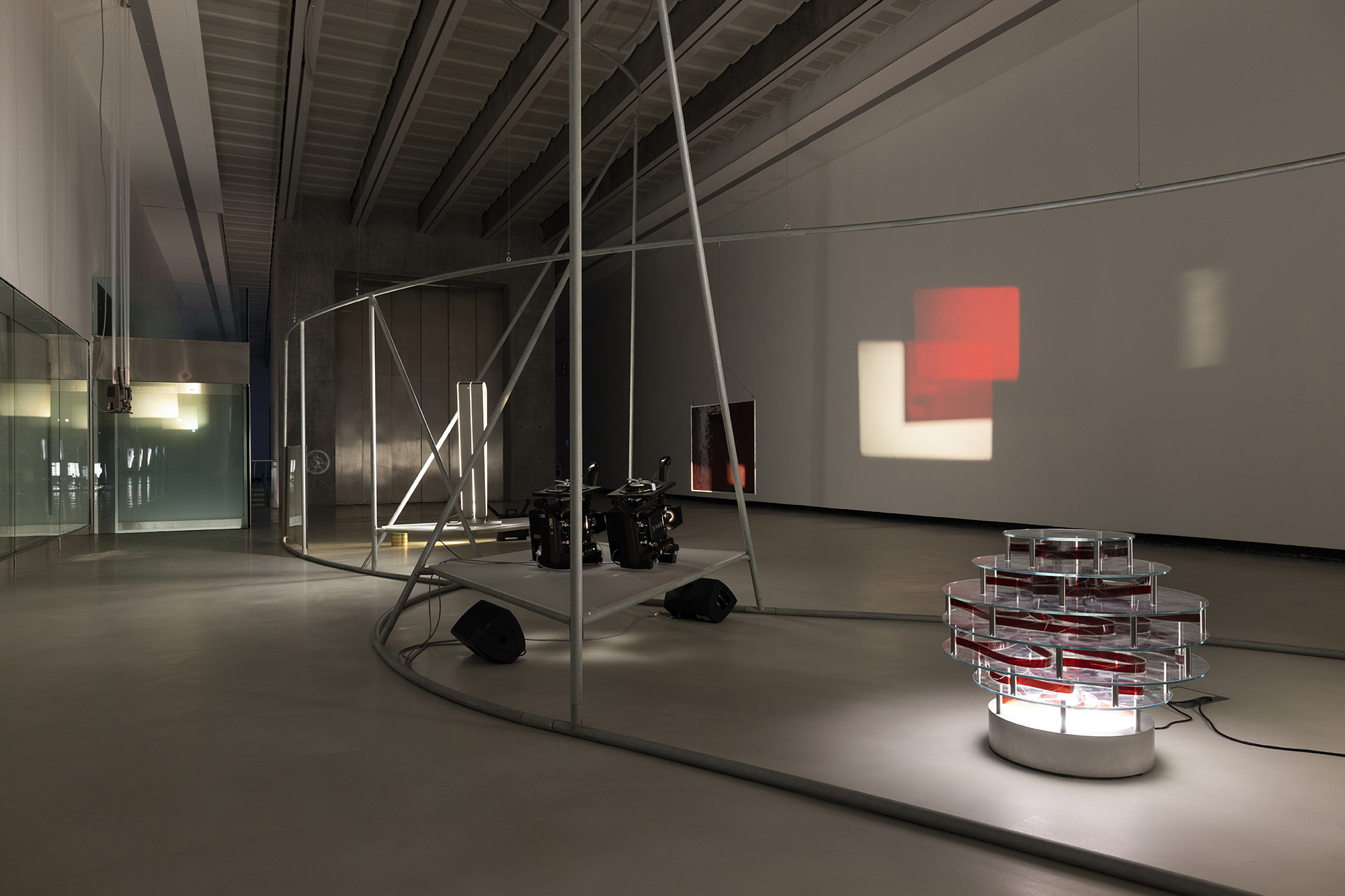 “My work takes a conceptual approach that considers cinema in an architectural sense and as an instrument, where the environment, the screen, and the projection can be combined or pushed forward to create another spatiotemporal dimension that is concurrent with and beyond the context of interior or exterior space. Uncertainty and speculation exist within that expanded space. It is an anarchic dimension and offers a new foundation for thinking and acting through destabilising the old hierarchy of the components of cinema by freeing them up from their original uses and letting them interact in new and unforeseen ways.” – Rosa Barba: On the Anarchic Organization of Cinematic Spaces – Evoking Spaces beyond Cinema, 2018, published by Hatje Cantz, 2021.