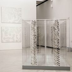 From her debut in 1947 with the abstract group Forma 1, and until her death, Carla Accardi (1924-2014) was one of the most original figures of art in Italy. Her research immediately turned towards the abstract sign, condensed from the early 1950s in its most characteristic figure, a «cloud» of signs linked to each other and arranged on monochrome backgrounds. From the mid-1960s, the artist substitutes canvas with a semi-rigid transparent plastic medium, sicofoil, on which she applies intensely coloured signs which in some cases also cover the frames behind them; this gesture frees the sign in space, giving these accumulations a three-dimensional character. The investigation of the sign will accompany the artist throughout her career up to the most recent works, such as the two canvases Bianco argento [White silver] on show, on which simplified and geometric signs appear, typical of her later style.