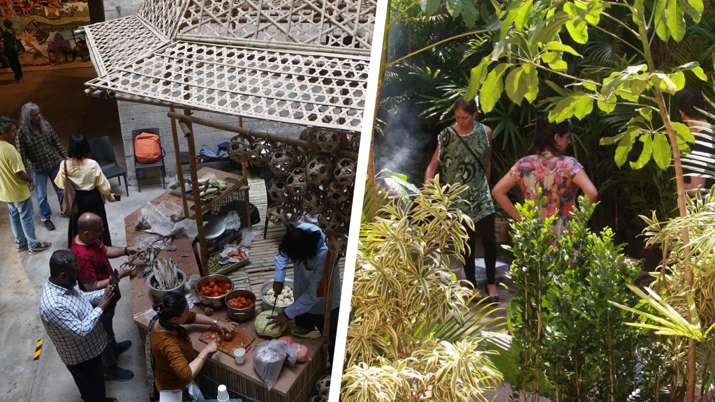 The meeting takes its cue from the works in the exhibition 1+1. The relational years, where both function as a genuine device for relationship building. With Pakghor (The Social Kitchen), Britto Arts Trust creates a community kitchen that is not only a place for preparing food, but also a space for meeting, listening, and exchanging ideas. A temporary architecture that welcomes and activates, where the daily gesture of cooking becomes a form of resistance and collective construction.