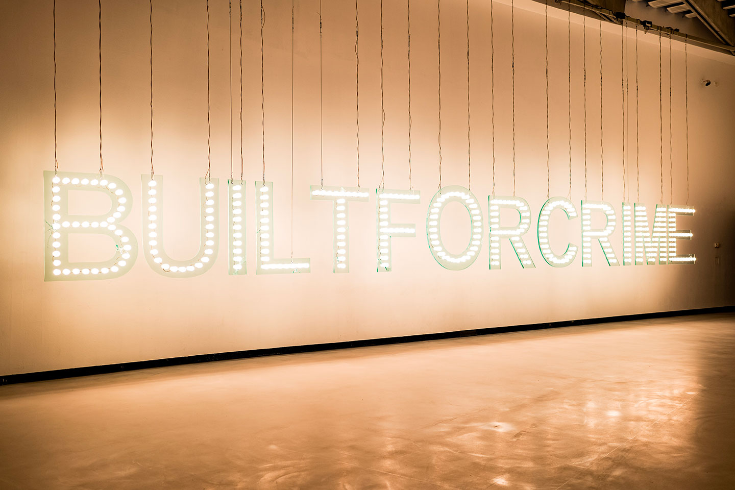 Please be advised that Monica Bonvicini’s work ‘Built for Crime’ features strobe effects and intense lighting changes. Caution is advised for people with neurodivergent conditions or photosensitive epilepsy.
