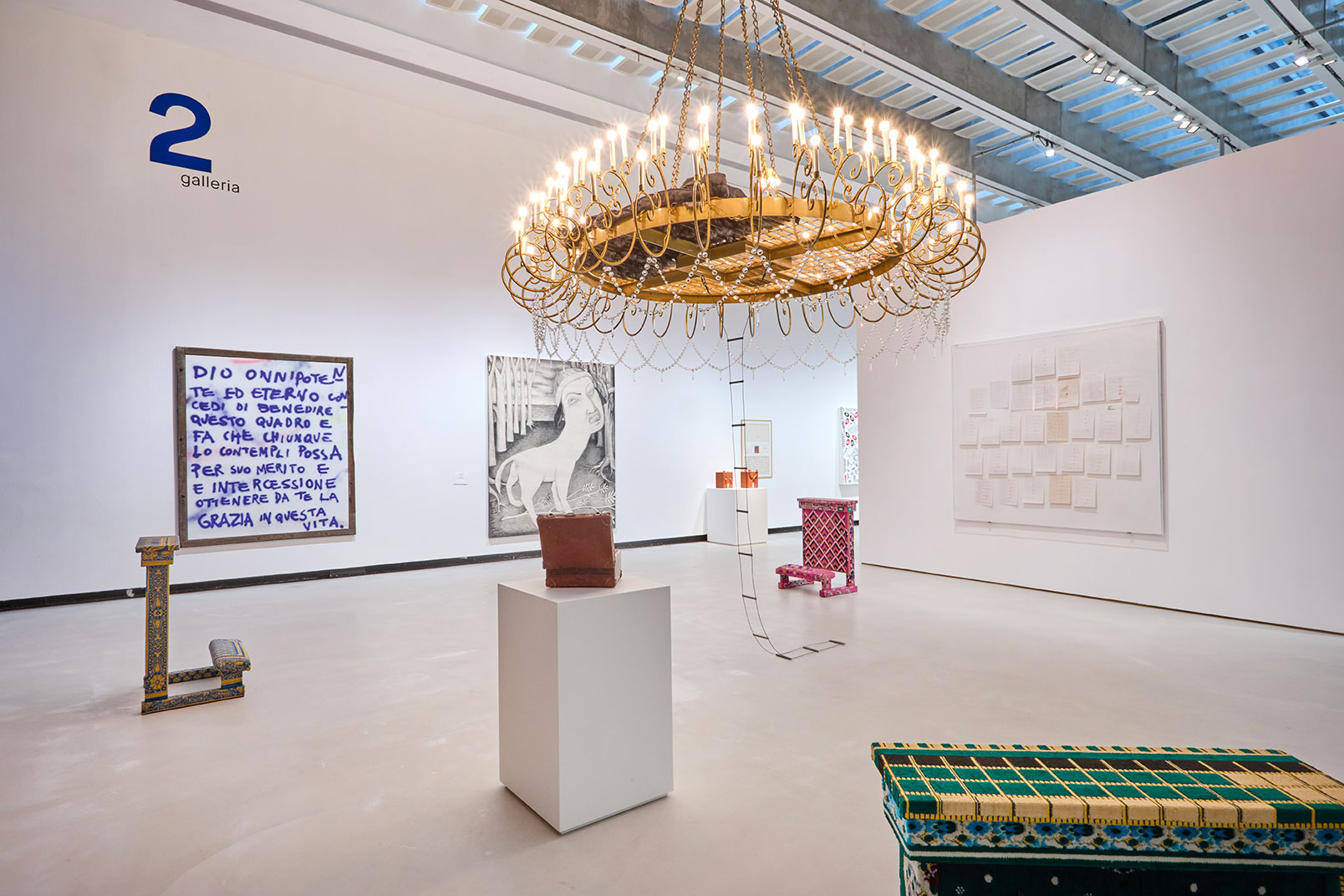 The works on display are not presented in chronological order but engage in dialogue with one another in a continuous and unprecedented juxtaposition of iconic works and less frequently explored ones. Among the artists featured: Gianfranco Baruchello, Elena Bellantoni, Mirella Bentivoglio, Tomaso Binga, Alighiero Boetti, Monica Bonvicini, Maurizio Cattelan, Adelaide Cioni, Roberto Cuoghi, Gino De Dominicis, Luciano Fabro, Lucio Fontana, Chiara Fumai, Silvia Giambrone, Nicole Gravier, Piero Golia, Piero Manzoni, Liliana Moro, Valerio Nicolai, Paola Pivi, Giuseppe Penone, Carol Rama, Lorenzo Scotto Di Luzio and Gilberto Zorio.