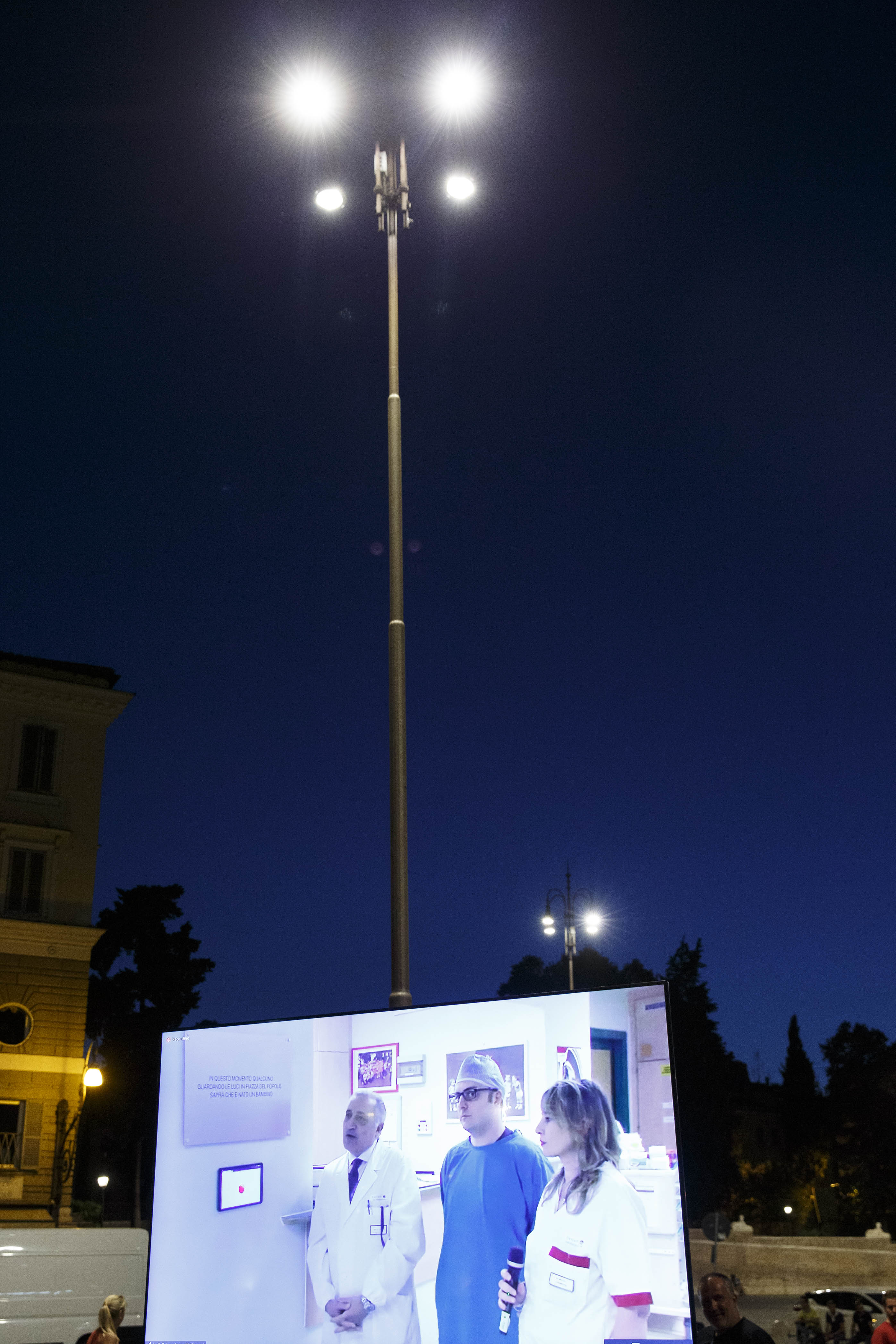 I lampioni di Piazza del Popolo sono collegati con il reparto di maternità del Policlinico Agostino Gemelli.