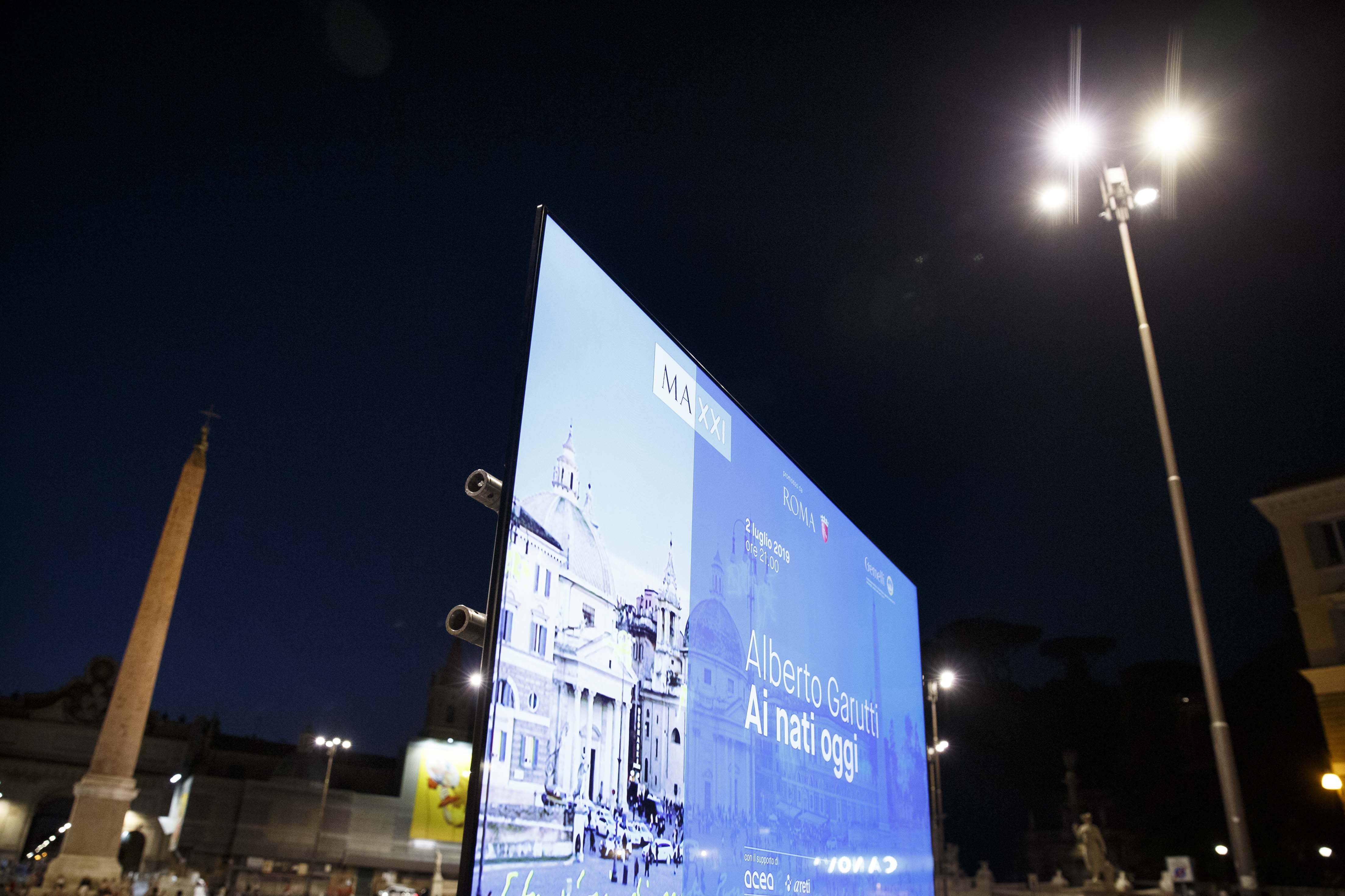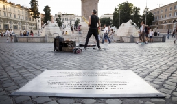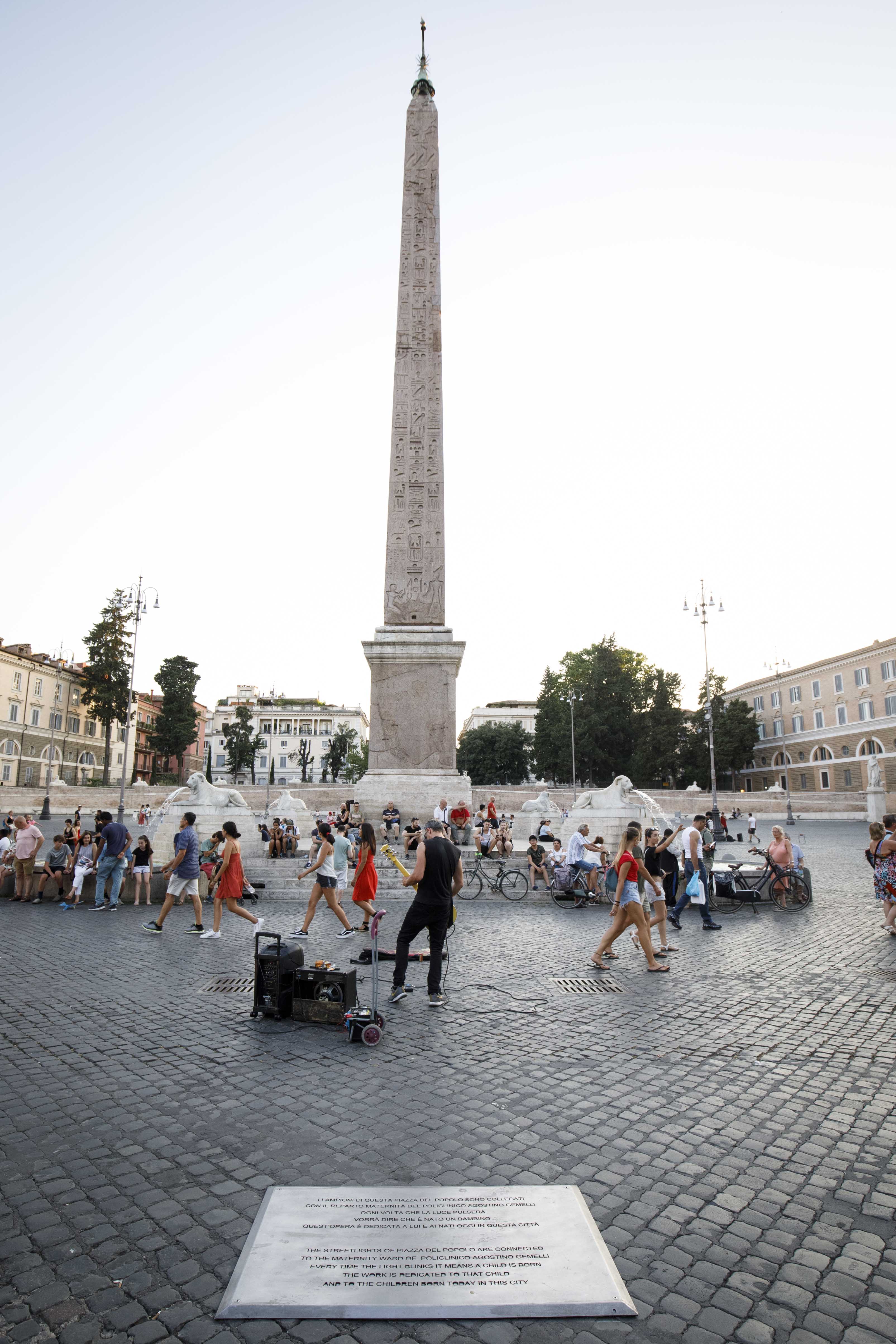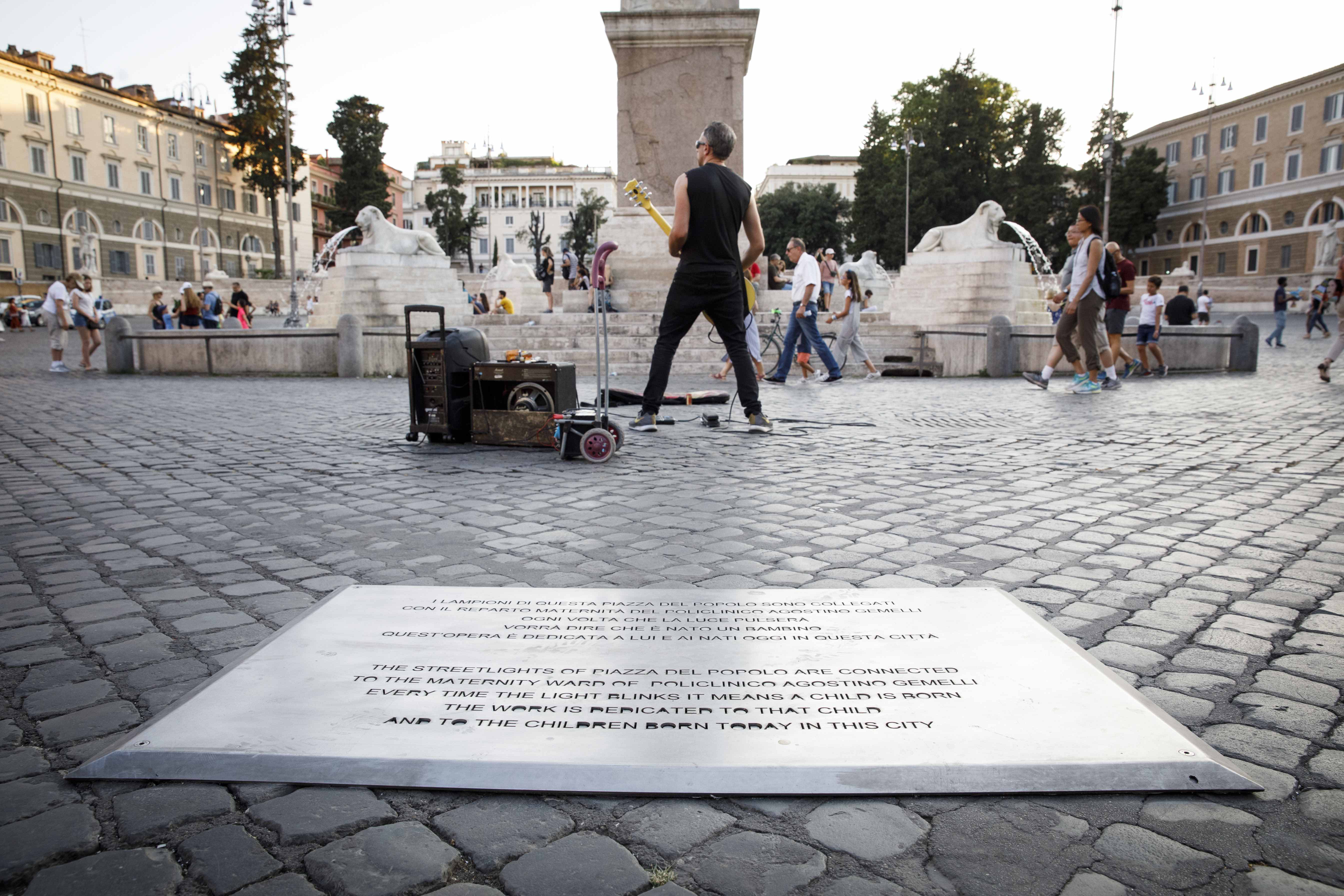 Un progetto di arte pubblica realizzato a Roma, in Piazza del Popolo, per celebrare l’evento universale della nascita suscitando un’emozione improvvisa e sincera.