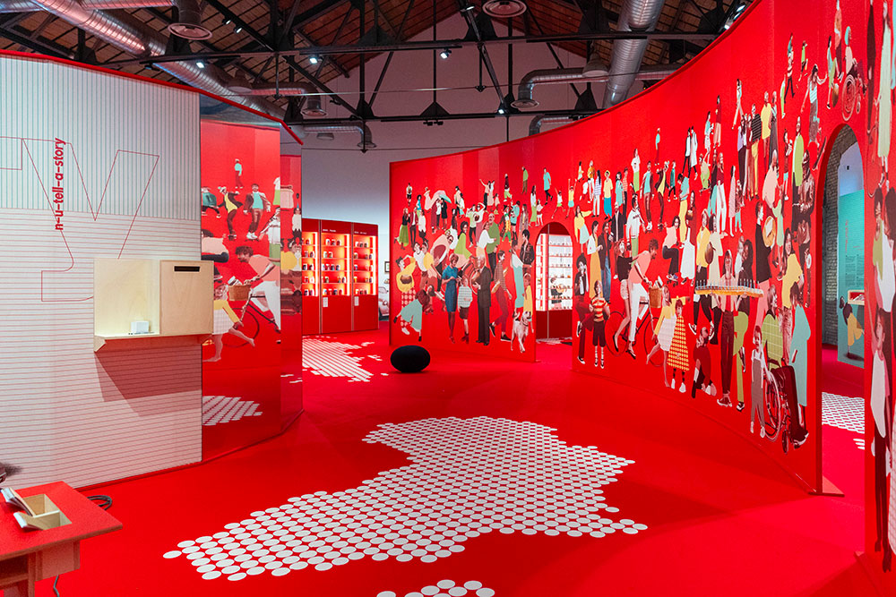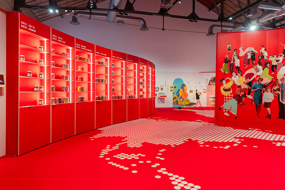 Il percorso espositivo, dalle forme avvolgenti che evocano la spalmabilità, prosegue ispirandosi ad una grande piazza di città – luogo di molti eventi nella storia di Nutella® – punto d’incontro e ritrovo in cui i protagonisti diventano i fan di tutti i tempi a cui è dedicato un grande wallpaper realizzato da Francesca Gastone, illustratrice che utilizza fotografie, materiali di archivio storici e contemporanei combinando tecniche analogiche e digitali.