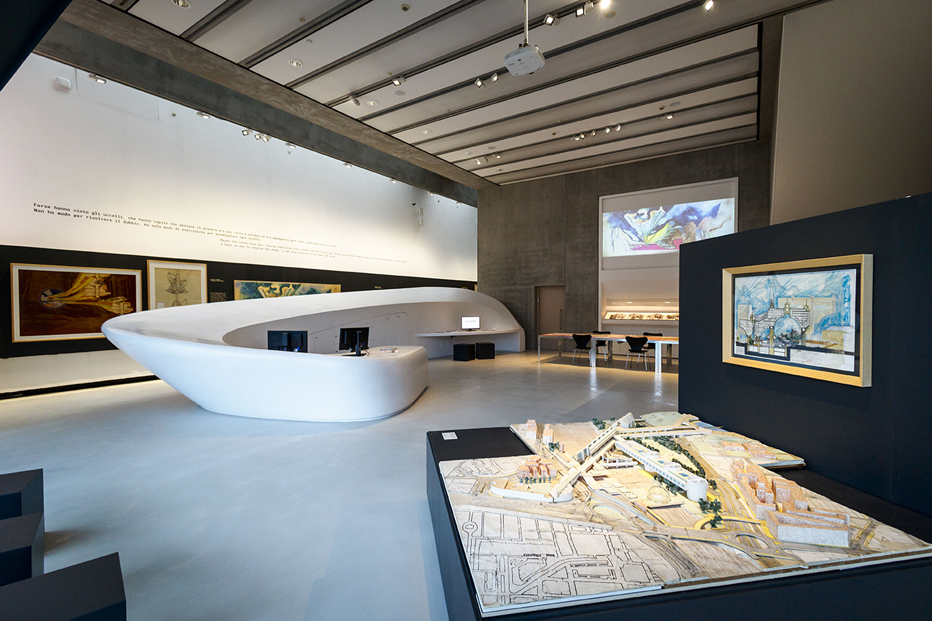 Una retrospettiva sintetica sull’attività professionale dell’architetto e sul suo parallelo percorso artistico, che presenta al pubblico i due nuclei prevalenti del corpus di materiali conservati al MAXXI, attraverso suggestioni oniriche e surreali e progetti di macrostrutture da sviluppare sul territorio.