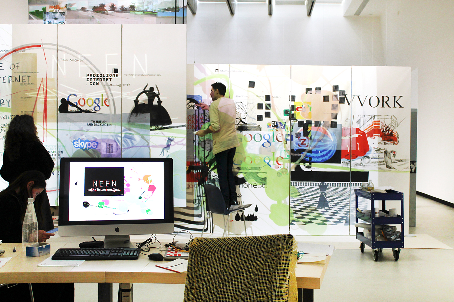 Collage di siti e immagini collezionate dalla rete, la superficie dell’Internet Painting si modifica, si aggiorna e ospita nuove pagine così come si modifica di continuo, compare e scompare, ogni sito web.